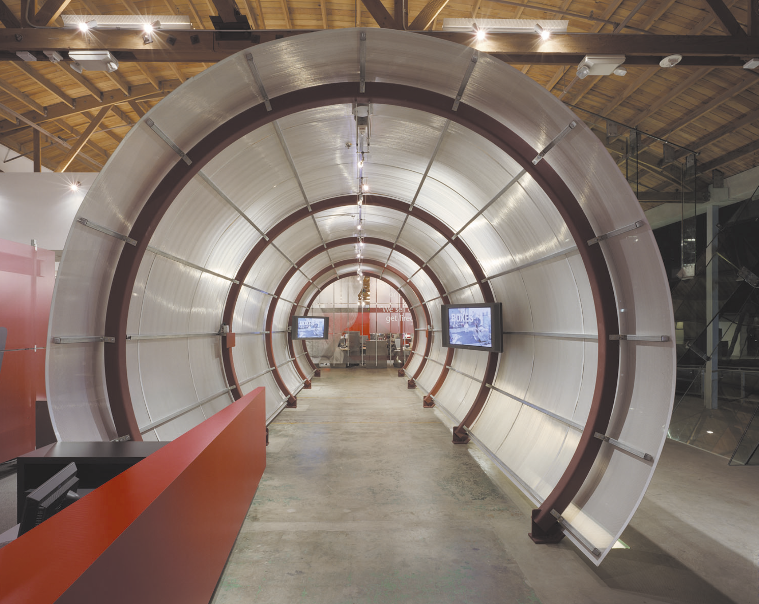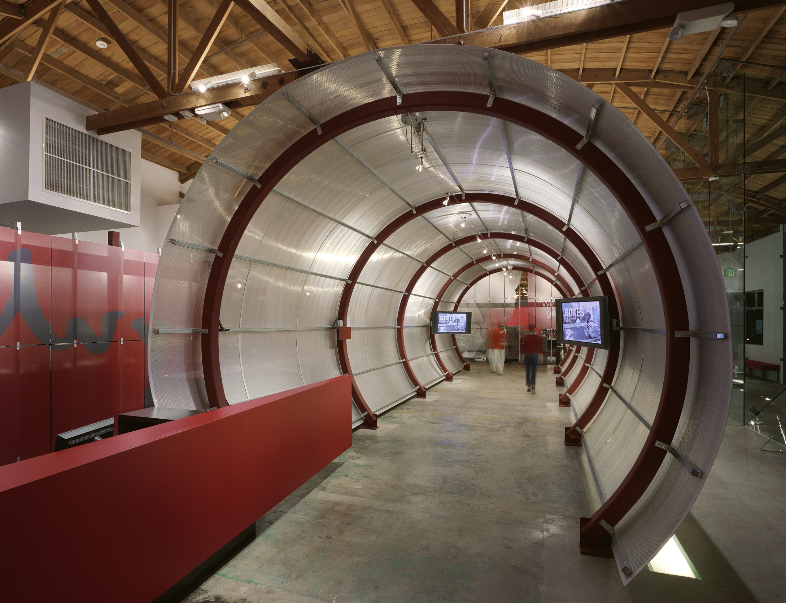 A global leader in large-scale advertising reinvents themselves with our help, inviting in transparency through a massive wall of glass; occasional privacy through interior carved-out rooms; and interaction through multiples spaces of encounter, including one long translucent tunnel.